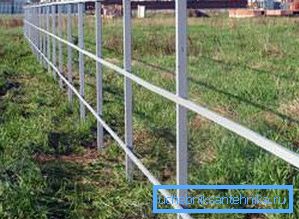 Nakon što se mješavina u svim jamama stvrdne i stupovi prestanu kretati pod pritiskom, možete započeti zavarivanje. Zapravo, na ovom mjestu samo trebate zavarivati dvije paralelne vodoravne linije na vrhu i dnu ograde.