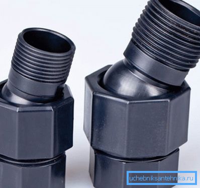 - navoj je pričvršćen na priključak. Navojna spojnica cijevi pripada kategoriji utikača, što olakšava demontažu i čišćenje cjevovoda.