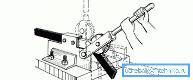 Kada hodite cijev, možete koristiti redoviti lanac bicikla. Zvijezde su zavarene na pogon i pogonjene osovine, a lanac je zategnut. Ručka je pričvršćena na pogonsko vratilo.