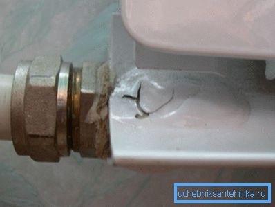 Razlog je visoka vjerojatnost vodenog čekića. Potrebno je naglo zatvoriti ventil ili ventil - a inercija praktički neuporabljive vode stvorit će udarni val, tlak na čijoj će strani doći do 20-25 kgf / cm snagom aluminijskih baterija ne više od 16.