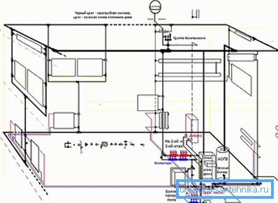 Ako je kuća jednokatnica, preporučljivo je napraviti jedan distribucijski čvor koji će se nalaziti pored kotao. Da biste sve uzeli u zasebnu sobu ili kombinirali, recimo, s kuhinjom - ta je odluka donesena na temelju izgleda i veličine kuće, modela kotla i vrste goriva na kojoj radi.