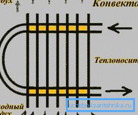 Agent za prijenos topline najčešće dolazi u gornji kolektor, odakle se počinje kretati duž unutarnjih kanala i napuniti uređaj. Na kraju, tekućina ulazi u izlazni otvor spojen na povratnu cijev sustava grijanja.