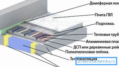 Iznad, kao u slučaju vodenog poda, izliva se estrih. Iznimka je filmski pod - na vrhu je bolje odmah postaviti linoleum ili laminat s dobrom toplinskom vodljivošću (obično označeno u označavanju).