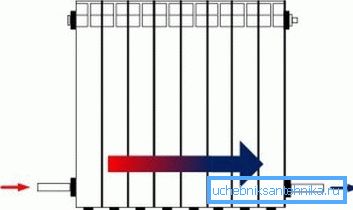 Na taj način preporučuje se priključiti radijatore u slučaju nestabilne temperature rashladnog sredstva u sustavu grijanja. Zanimljivo je da instrukcija sadrži značajke dizajna dizajnirane za dijagonalnu vezu.