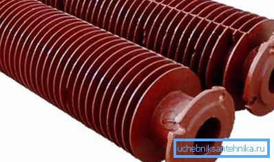 Oboje u samostalnom, te u tvorničkom dizajnu proizvoda s perajama ili "perjem" su naširoko koristi. U ovom slučaju, to je pitanje da su metalne trake ili ploče zavarene na glatkoj cijevi. Zbog povećanja površine metala, termoliza se značajno povećava. Posebno, cijevni radijator za kamine, prikazan na slici, radi točno u skladu s ovim principom.