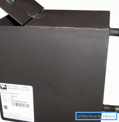 U ovom slučaju, spremnik za ekspanziju je jednostavan spremnik u koji, ako je potrebno, možete dodati kantu vode za zamjenu isparene vode. U pravilu, cijena takvog uređaja je jednaka paru elektroda, a cijena po kvadratnom metru čeličnog lima je nekoliko milimetara debela.