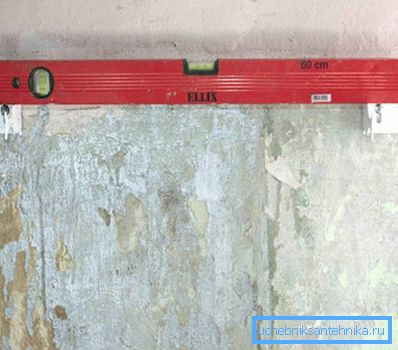 Zatim se pričvršćujemo za pričvršćivanje i pričvršćujemo označene linije uz visinu od oko 50 cm. Pričvršćivanje se može provesti pomoću klinova, ako su zidovi opeke ili betona, a također i samouvjereni vijci, ako su zidovi drveni.