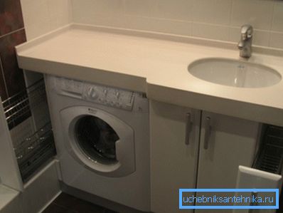 U maloj sobi, najbolja opcija je postaviti perilicu u cjelinu s umivaonikom.