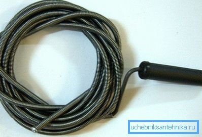 No vodovodni kabel radi na drugačijem principu - jedan kraj kabela lansiran je u otvor za pražnjenje i gurnut u glavnu crtu dok se metal ne naslanja na utikač. Čim se to dogodilo, morate početi okretati žicu oko svoje osi. Točka je u tome što je kraj kabela uvijen u pluto i počinje ga uništiti tijekom naknadnih rotacija.