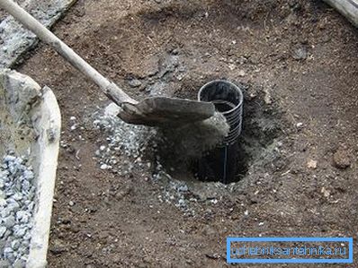 - Konačno, kuglasta se puni betonom ili cementnim mortom.. Da biste to učinili, morate postaviti uljnu brtvu iznad filtra za dobro prozračivanje ili uliti zonu filtracije i pol na dva metra iznad ruševina, a zatim otopinu uliti u kanal s lopatom. Tijekom rada potrebno je vibrirati cijev za gusto polaganje betona.