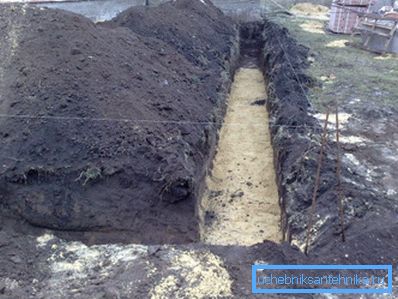 - pokriti dno rova s pijeskom jastukom visokom 200 mm, obilno ga navlažiti i tamp down;