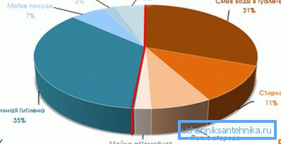 - Za obitelj od 4, brzina potrošnje vršne vode iznosi 50 litara u minuti. Za više potrošača produktivnost se izračunava proporcionalno.