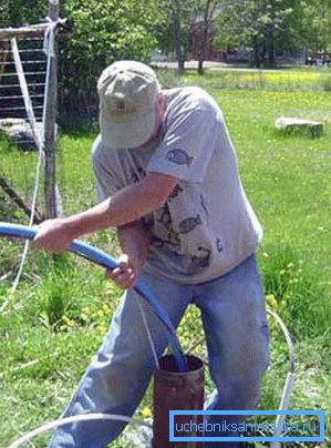 - U skladu s dobivenim podacima, pripremamo kabel, kabel i cijev za podizanje vode potrebne duljine. Kako bi se olakšala instalacija, kabel napajanja spojimo s crijevom sa plastičnim kopčama svaka 3-4 metra.