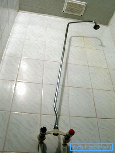 Naravno, najpouzdaniji će biti najjednostavniji dizajn s fiksnim elementima. U našem slučaju, to je slavina za tuširanje s postoljem bez fleksibilne cijevi. Nedostatak ovog rješenja je očigledan: ne možete poslati vodu odozdo prema gore ili do željene točke.