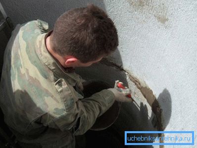 - U jazu između zidova jame i betonskih prstena zaspala je smjesa od gline i pijeska. Ako veličina otvora dopušta, također možete obraditi zidove s mastiku na bazi bitumena.